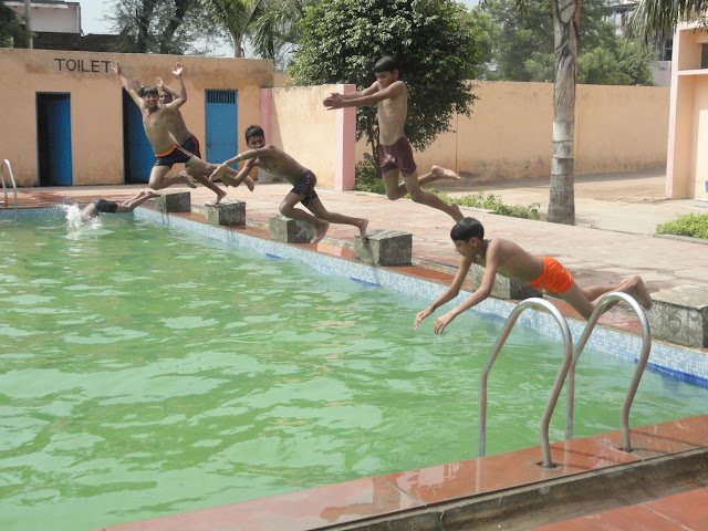 The school has standard size swimming pool. The students made the school proud of winning various medals at district and state level.